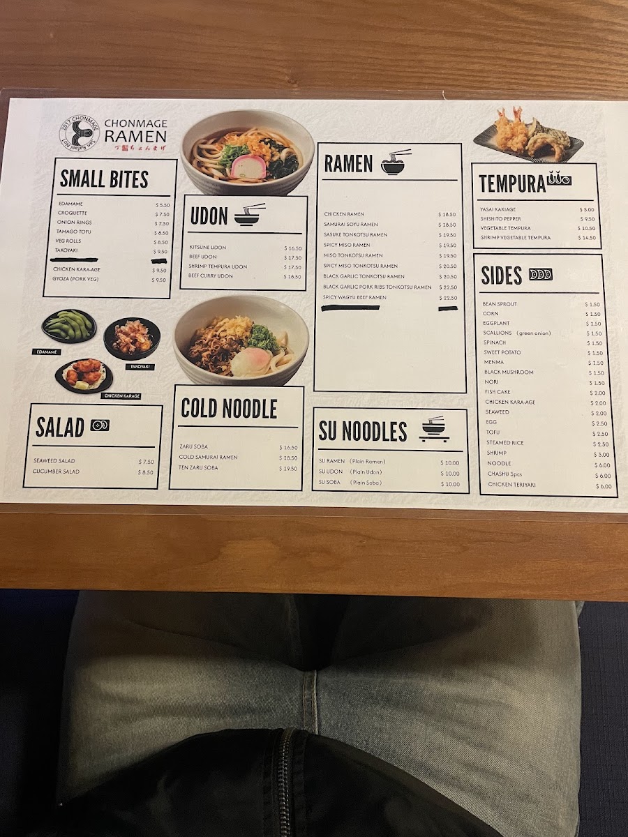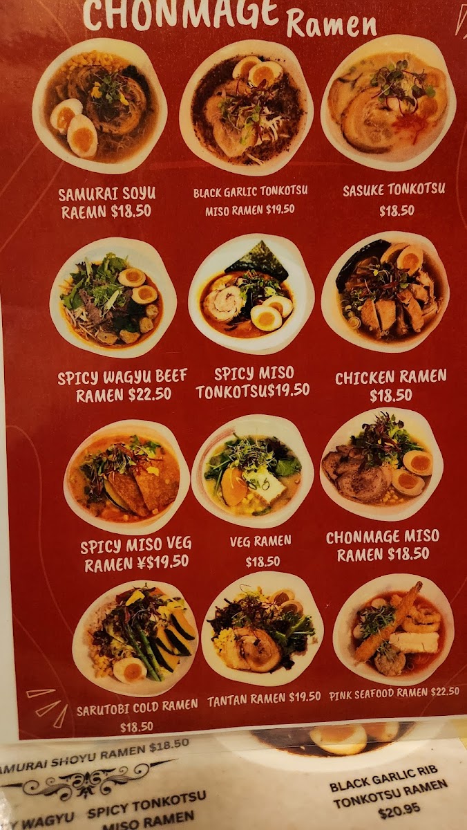 Chonmage Japanese Restaurant Menu
